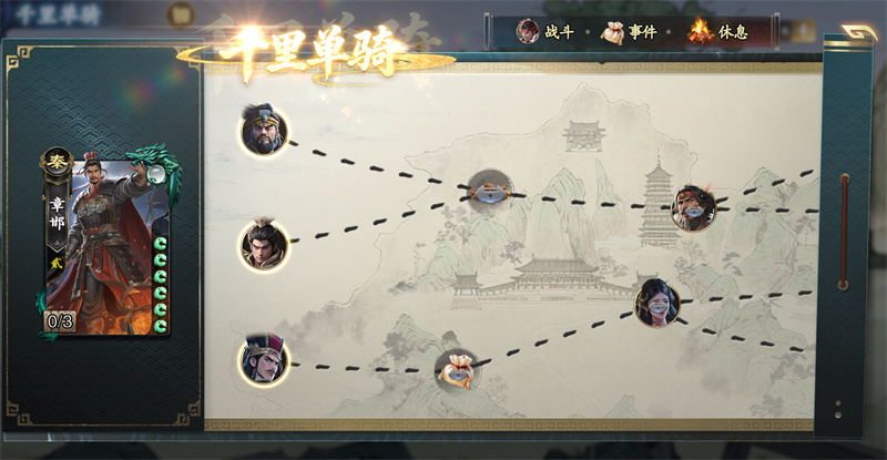 路线:在开始挑战后,我们可以自己选择挑战路线,每条路径会遭遇到不同的敌人、事件。我们打通的关卡越多,结算时获得的义旗越多(难度决定了上限)。