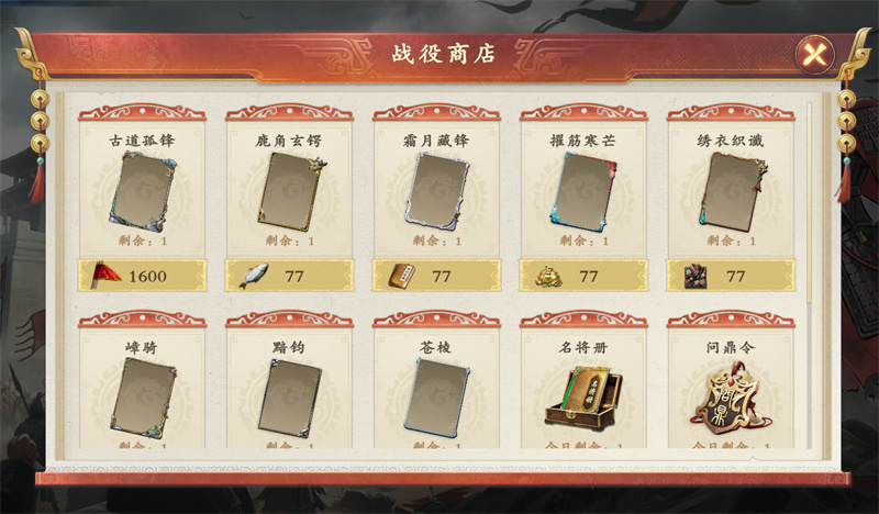 义旗可以在战役商店兑换形象边框、名将册、问鼎令等奖励,如果我们技术比较好,每天都可以换1个名将册(消耗1000义旗兑换)。