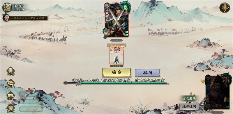 随后使用阵前对决,山贼没杀,会受到2点伤害;使用杀,打1点伤害,即可通关。